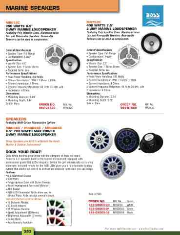 350 WATTS 6.5" 2-WAY MARINE LOUDSPEAKER Featuring Poly Injection Cone, Aluminum Voice Coil and Removable Tweeters. Removable Tweeters can be used as components.
