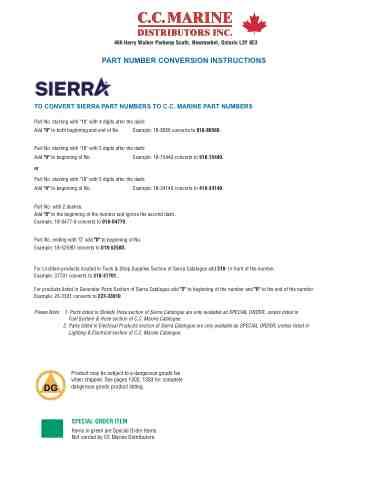 TO CONVERT SIERRA PART NUMBERS TO C.C. MARINE PART NUMBERS