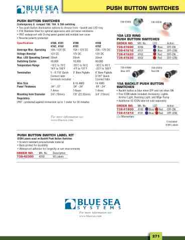 15A BACKLIT PUSH BUTTON SWITCHES • Backlit button is blue when OFF and red when ON • Five ICON labels included: Accessory, Lights,