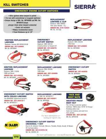 • Kills ignition when lanyard is pulled • For use with conventional or magneto ignitions • Unique design of Mfr. No. MP40960 and Mfr. No. MP40970 keeps plunger down when lanyard connected • Seals out moisture • Makes reconnection easier • Panel thickness up to 1/4"