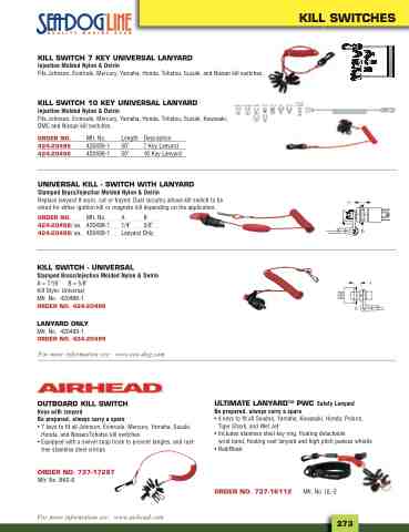 Honda, and Nissan/Tohatsu kill switches • Equipped with a swivel snap hook to prevent tangles, and rust-