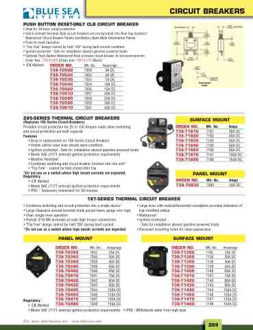Waterproof Circuit Breaker Panels and Battery Bank Main Distribution Panels • Push-to-reset operation • “Trip Free” design cannot be held “ON” during fault current condition • Ignition protected - Safe for installation aboard gasoline powered boats • Optional Push Button Waterproof Boot protects circuit breaker in wet environments