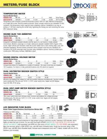 ORDER NO. Mfr. No. A B C Volts Amps 424-21625 421625-1 1-7/16" 1-3/8" 1-1/8" 4-30 10 Compact size allows for installation in a variety of locations – the same round size as a standard 12V receptacle. For interior or fully protected locations only. DC shunt not required.