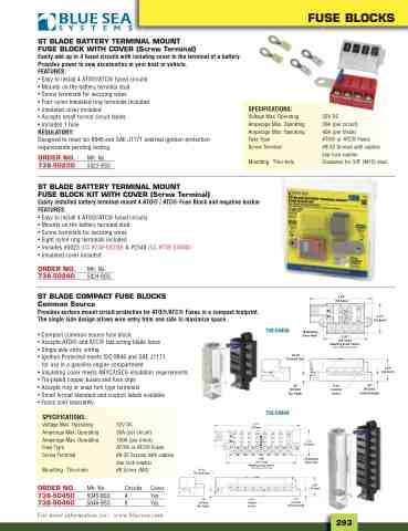 • Compact common source fuse block • Accepts ATO® and ATC® fast acting blade fuses • Single side entry wiring • Ignition Protected-meets ISO 8846 and SAE J1171