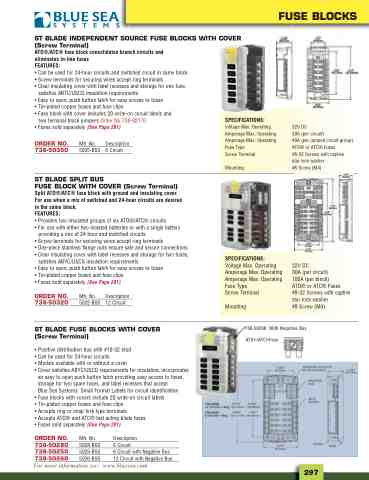 satisfies ABYC/USCG insulation requirements • Easy to open, push button latch for easy access to fuses • Tin-plated copper buses and fuse clips • Fuses sold separately (See Page 281)