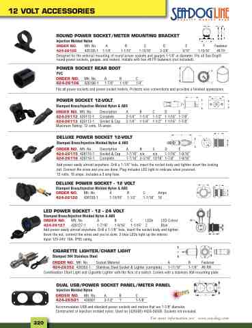 ORDER NO. Mfr. No. A B 424-26127 426127-1 1-7/16" 1-9/16" Add power easily almost anywhere. Drill a 1-1/8” hole, insert the socket body and tighten down the nut, connect the wires and you’re done. 2 blue LEDs light up the interior. Input 12V-24V. 16A. IP65 rating.