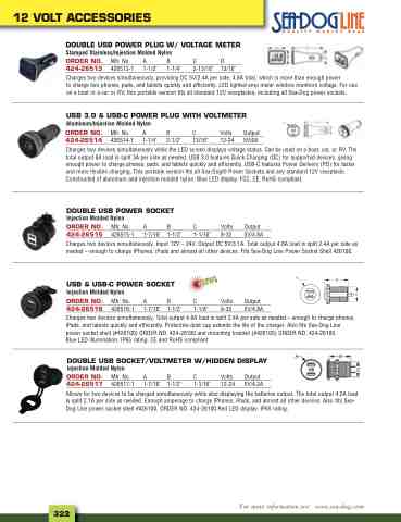 Charges two devices simultaneously while the LED screen displays voltage status. Can be used on a boat, car, or RV. The total output 6A load is split 3A per side as needed. USB 3.0 features Quick Charging (QC) for supported devices, giving enough power to charge phones, pads, and tablets quickly and efficiently. USB-C features Power Delivery (PD) for faster and more flexible charging. This portable version fits all Sea-Dog® Power Sockets and any standard 12V receptacle. Constructed of aluminum and injection molded nylon. Blue LED display. FCC, CE, RoHS compliant.