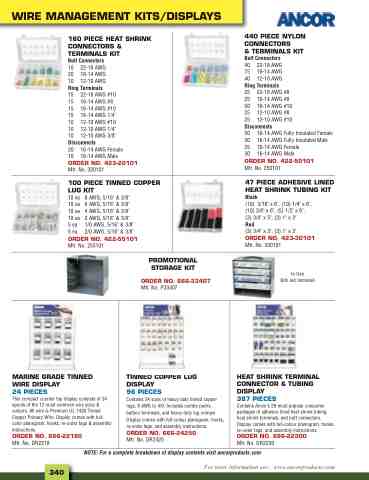 Contains Ancor’s 29 most popular consumer packages of adhesive lined heat shrink tubing, heat shrink terminals, and butt connectors. Display comes with full-colour planogram, hooks, re-order tags, and assembly instructions. ORDER NO. 666-22300