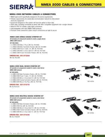 • (1) NMEA 2000 Male Termination Resistor (Mfr. No. PC51080) • (1) NMEA 2000 Power T Cable, 3 ft. (Mfr. No. PC51050) • (1) NMEA 2000 Micro-C Drop Cable 6 ft. (Mfr. No. PC51160) • (1) NMEA 2000 Female Termination Resistor (Mfr. No. PC51070) • (1) NMEA 2000 Micro 2-Tee Piece (Mfr. No. PC51100)