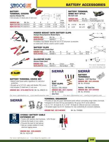 ORDER NO. Mfr. No. A 424-26450 426450-1 6’ The Battery Clip Adapter allows the use of 12 volt power accessories on small boats without a built in power socket.
