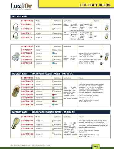 This Luxor bayonet bulb offers an outer plastic envelope to protect the LED bulb from the elements. Available in the BA15S and BA15D base provides the most common bases utilized in the marine and RV applications.