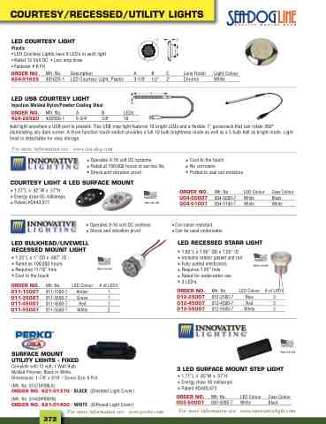 • LED Courtesy Lights have 9 LED’s in each light • Rated 12 Volt DC • Low amp draw • Fastener # 6 FH ORDER NO. Mfr. No. Description A B C 424-01625 401625-1 LED Courtesy Light, Plastic 3-1/8" 1/2" 2"