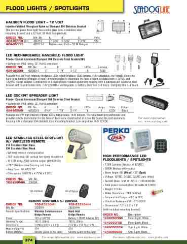 • Wireless remote communication • 350˚ horizontal, 60˚ vertical two speed movement • 12 LED array, 2600 lumens output (60,000 CD) • IP67 Stainless steel housing and base • Amp Draw: 3A @12V DC • Dimensions: 9.875"H x 4.75"W x 8.35"L
