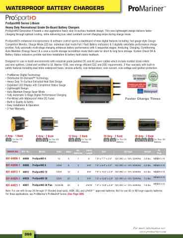 Note: For use with Group 24 through 31 Flooded (lead-acid), AGM, GEL and LiFeO4** approved batteries. Not for use 4D or 8D large capacity batteries. For these applications, see ProMariner’s ProNauticP Series (See Page 388).