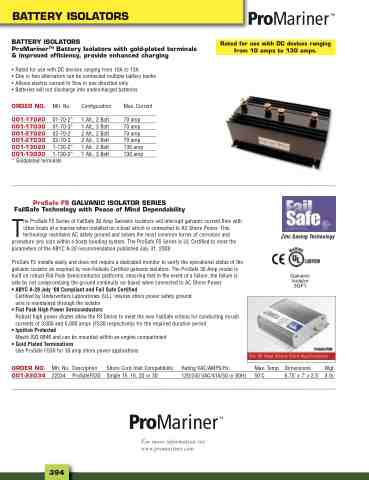 BATTERY ISOLATORS ProMarinerTM Battery Isolators with gold-plated terminals & improved efficiency, provide enhanced charging