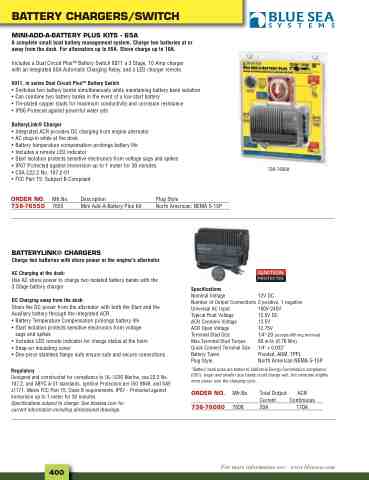 • Start isolation protects sensitive electronics from voltage sags and spikes • IP67 Protected against immersion up to 1 meter for 30 minutes • CSA C22.2 No. 107.2-01 • FCC Part 15: Subpart B Compliant
