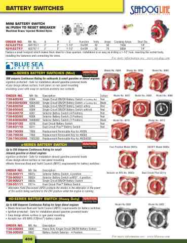 • Meets American Boat and Yacht Council (ABYC) requirements for battery switches • Ignition protected - Safe for installation aboard gasoline powered boats • Case design allows surface or rear panel mounting • Accepts two 4/0 AWG (120mm2) battery cables
