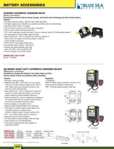 or starting isolation feature is engaged • Side and bottom knockouts for power cable connections • Clip-on cover protects terminal connections • 1/4" x .032" male quick connect terminals for ground, optional remote LED and starting isolation • 7/8" stud length to accept multiple cable terminals • Start Isolation (SI) - Can be configured for temporary isolation of
