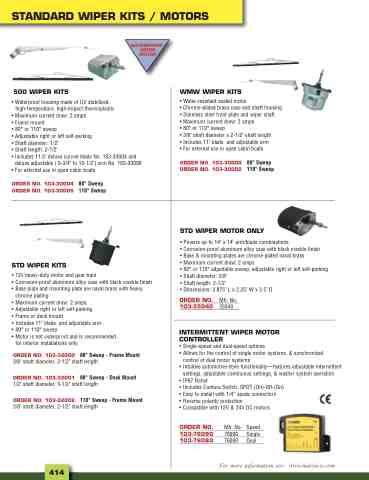 • Maximum current draw: 2 amps • Frame mount • 80° or 110° sweep • Adjustable right or left self-parking • Shaft diameter: 1/2"