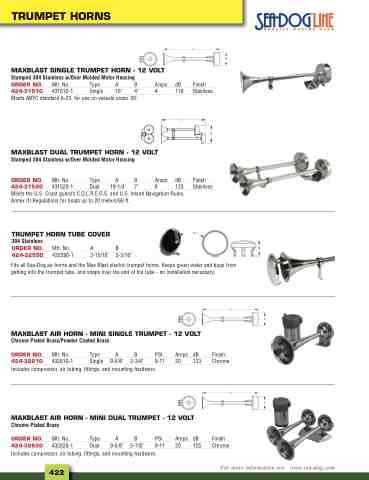 ORDER NO. Mfr. No. Type A B Amps dB 424-31520 431520-1 Dual 18-1/4" 7" 8 123 Meets the U.S. Coast guard’s C.O.L.R.E.G.S. and U.S. Inland Navigation Rules, Annex III Regulations for boats up to 20 meters/66 ft.