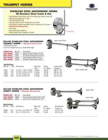 • 304 Stainless Steel inside and out including the sealed sound unit • No rust Guaranteed for 5 Years • US Patent #6,349,142 • All meet ABYC A-23 for boats up to 12 meters