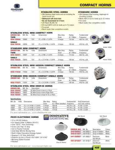 • Meets ABYC A-23 for boats up to 12 meters • Pre-wired • Much louder than competitive models