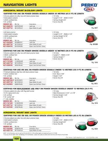 NOTE: All of the above can be used as 24-volt A.B.Y.C. A-16 certified lights on boats built prior to 11/1/03. To use as 24-volt lights while maintaining A-16 certification, replace the bulbs provided with Order No. 621-07212 24-volt bulbs.
