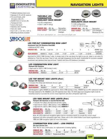 • Approved for USCG 2 NM (Colreg 2 mile) ORDER NO. Mfr. No. A B