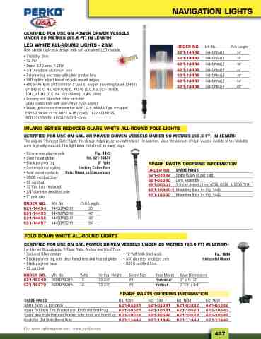 • Visibility: 2nm • 12 Volt • Draw: 0.10 amp, 1.28W • 3/4" Anodized aluminum pole • Polymer top and base with clear frosted lens • LED optics adjust based on pole mount angles • Fits all Perko® and common 0˚ and 5˚ plug-in mounting bases (2-Pin)