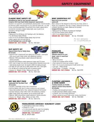 PADDLERS SAFETY PACK Ultimate safety kit for your kayak, canoe or small boat Kit Includes: • Micro first aid kit • Fox40 micro pealess safety whistle • Clear waterproof screw-top container / bailer • 50 ft. (15 m) woven polypropylene Fox40 marine rope • LED light - • Bilge sponge • 2glowsticks-•Compass- •Drybag ORDER NO. 561-79802 Mfr. No. 7928-0200