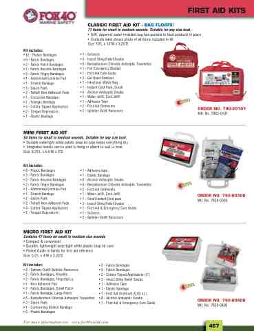 CLASSIC FIRST AID KIT - BAG FLOATS! 71 items for small to medium wounds. Suitable for any size boat. • Soft, zippered, water-resistant bag has pockets to hold products in place • Contents label shows photo of all items included in kit Size: 10"L x 13"W x 3.25"D