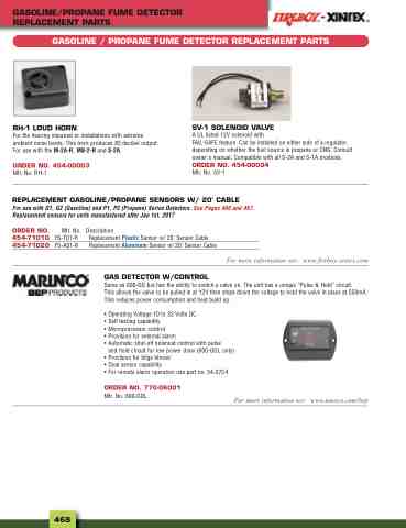 For use with G1, G2 (Gasoline) and P1, P2 (Propane) Series Detectors, See Pages 466 and 467. Replacement sensors for units manufactured after Jan 1st, 2017
