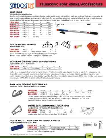 ORDER NO. 424-91055 424-91056 Cast 316 stainless steel snap makes attaching a line to a mooring buoy a simple and quick process. Includes the snap hook, keeper plate, and fasteners for attaching the keeper plate to a boat hook (Sea-Dog boat hooks have predrilled mounting holes).