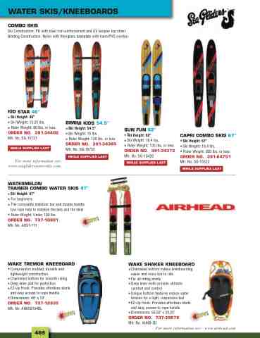 CAPRI COMBO SKIS 67" •Ski Height: 67" • Ski Weight: 18.4 lbs. • Rider Weight: 200 lbs. or less ORDER NO. 391-64751 Mfr. No. SG-15522