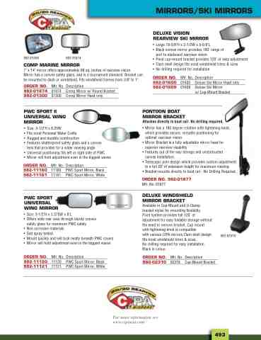 port to starboard rearview vision • Pivot cup-mount bracket provides 120˚ of easy adjustment • Clam shell design fits most windshield trims & sizes • No drilling required for installation