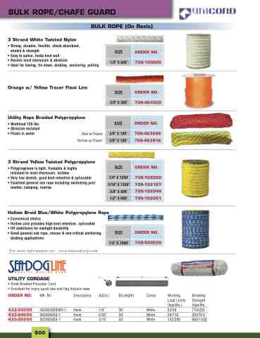 • Easy to splice, holds knot well • Resists most chemicals & abrasion • Ideal for towing, tie down, docking, anchoring, pulling