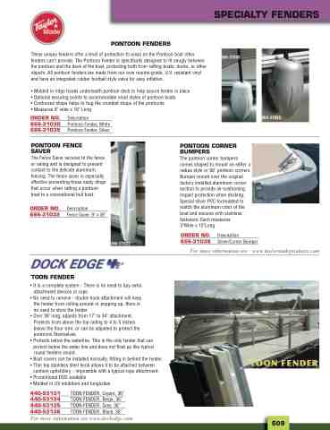 PONTOON CORNER BUMPERS The pontoon corner bumpers comes shaped to mount on either a radius style or 90˚ pontoon corners. Bumper mount over the original factory installed aluminum corner section to provide air-cushioning impact protection when docking. Special silver PVC formulated to match the aluminum color of the boat and secures with stainless fasteners. Each measures
