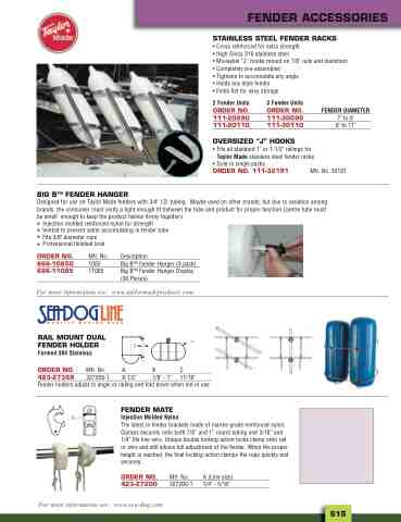 ORDER NO. Mfr. No. A B C 423-27359 327359-1 9-1/2" 7/8" - 1" 11/16" Fender holders adjust to angle of railing and fold down when not in use.