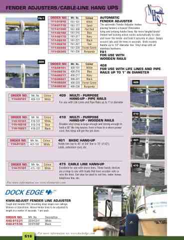 AUTOMATIC FENDER ADJUSTER The automatic Fender Adjuster makes placing fenders a breeze! Eliminates tying and untying fender lines. No more tangled knots! Instant self locking action works automatically to raise and lower the fender and hold it securely in place. Snaps around rails and life-lines in seconds. Both models handle up to 1/2" diameter line. Vinyl strap with all stainless hardware. FA1 FOR USE WITH WOODEN RAILS