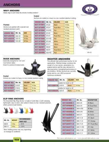 Anchors are coated in a heavy no-mar resistant plastisol coating.