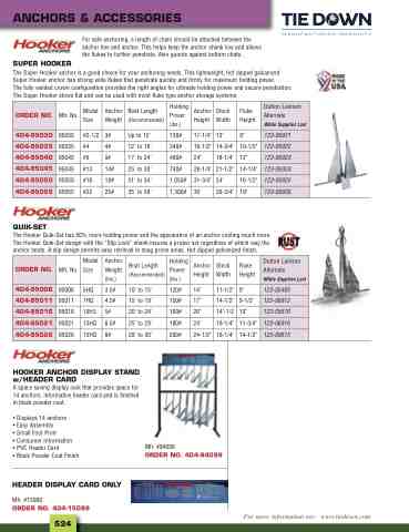 HOOKER ANCHOR DISPLAY STAND w/HEADER CARD A space saving display rack that provides space for 14 anchors, informative header card and is finished in black powder coat.