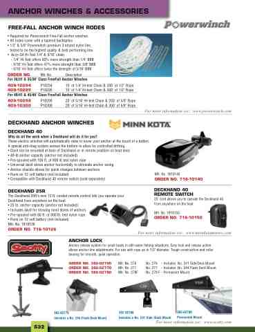 • Pre-spooled with 100 ft. of 800 lb test nylon rope • Universal davit stows anchor horizontally to eliminate anchor swing • Anchor shackle allows for quick changes between anchors • Runs on 12 volt battery (not included) • Compatible with Deckhand 40 remote switch (sold separately)