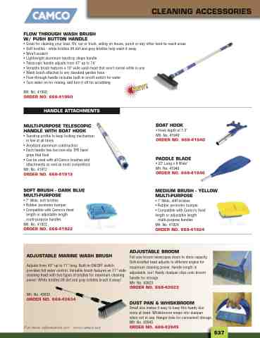 FLOW THROUGH WASH BRUSH W/ PUSH BUTTON HANDLE • Great for cleaning your boat, RV, car or truck, siding on house, porch or any other hard-to-reach areas • Soft bristles - white bristles lift dirt and grey bristles help wash it away • Won’t scratch • Lightweight aluminum teardrop shape handle • Telescopic handle adjusts from 47" up to 74" • Versatile brush features a 10" wide wash head that won’t swivel while in use • Wash brush attaches to any standard garden hose • Flow-through handle includes built-in on/off switch for water • Turn water on for rinsing, and turn it off for scrubbing