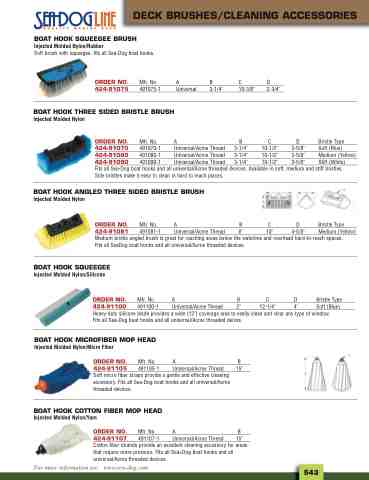 Fits all Sea-Dog boat hooks and all universal/Acme threaded devices. Available in soft, medium Side bristles make it easy to clean in hard to reach places.