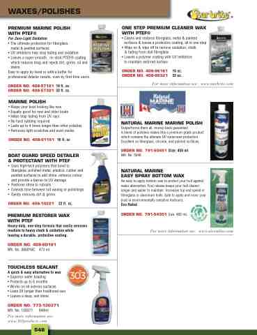 • Restores shine to rubrails • Extends time between full waxing or polishings • Gently removes dirt & grime