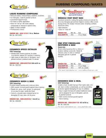• Removes stains, medium/heavy oxidation, scratches • For fiberglass, metal & painted surfaces • Convenient liquid formula • For hand or buffer application
