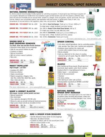 SPIDER SPOT & BIRD DROPPING REMOVER For Decks, Boat Tops and Non-Porous Surfaces • Dissolves messy spider & bird droppings • Safe for use around children & pets • Contains no bleach • Natural formulation • Will not remove waxes & polishes • Non-toxic