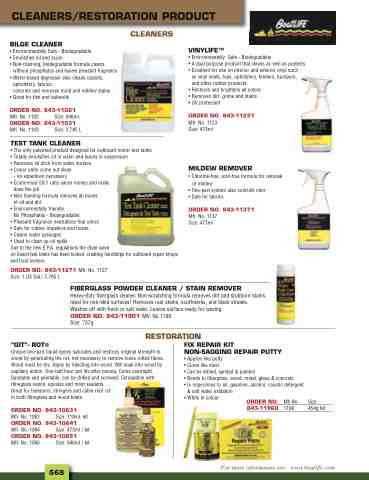Heavy-duty fiberglass cleaner. Non-scratching formula removes dirt and stubborn stains. Ideal for non-skid surfaces! Removes rust stains, scuffmarks, and black streaks. Washes off with fresh or salt water. Leaves surface ready for waxing. ORDER NO. 843-11901 Mfr. No.1190