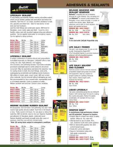 A unique combination of marine silicone and polyurethane formulated especially for fiberglass. LifeSeal® offers a fast- curing, low odor, high adhesion, non-sagging, non-corrosive, non-yellowing formula. It provides a durable permanent watertight seal for joints subject to structural movement. May be used above and below the waterline. Use for sealing decks to hulls, thru-hull fittings, vinyl ports, sealing/glazing windshields and bedding marine hardware. Will adhere to metal, glass, wood, Lexan, ABS and certain other materials. Can be removed without damaging gel-coat. Not recommended for ferro cement hulls, impregnated wood or oil-soaked materials. Cures in presence of water.