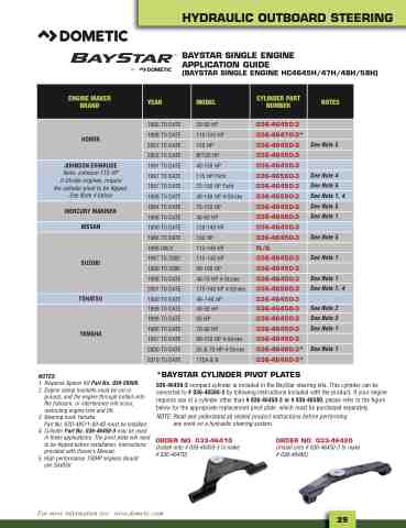 036-46450-3 compact cylinder is included in the BayStar steering kits. This cylinder can be converted to # 036-46580-3 by following instructions included with the product. If your engine requires use of a cylinder other than # 036-46450-3 or # 036-46580, please refer to the figure below for the appropriate replacement pivot plate, which must be purchased separately.